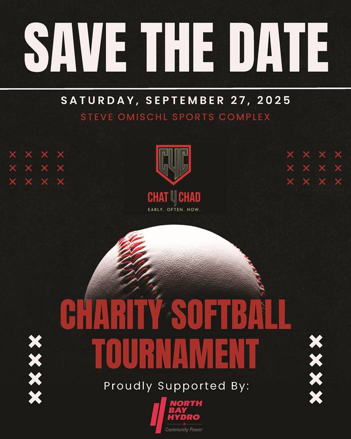 Join us on Saturday September 27th at Steve Omischl Sports Complex for a Softball Tournament hosted by Chat4Chad – proudly supported by North Bay Hydro.